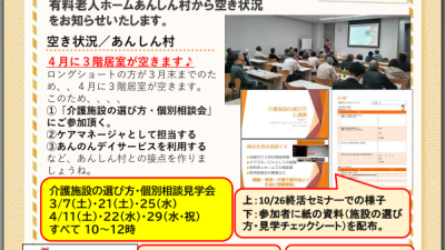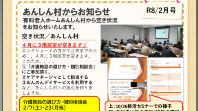 有料老人ホームあんしん村の空き状況や、ケアマネージャ・ご家族向けにお届けする記事一覧です。