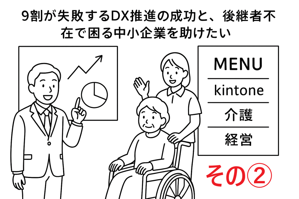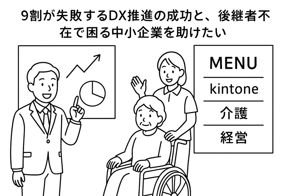【法人向け】9割が失敗するDX推進の成功と、後継者不在で困る中小企業を助けたい、そんな思いで作った料金メニューとは。kintoneと介護と経営からヘルプします