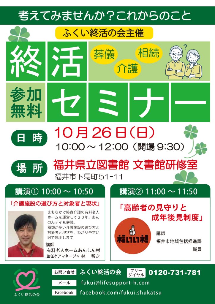 10月26日(日)にはふくい終活の会、終活セミナーでも