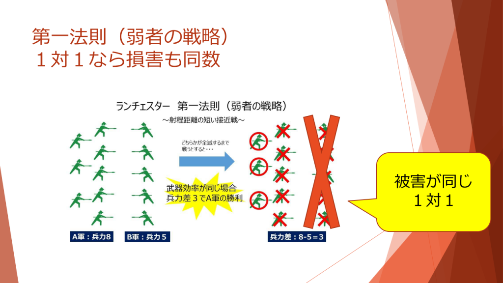 1対1の作戦で対峙すると、被害が同じになるがゆえに、、、